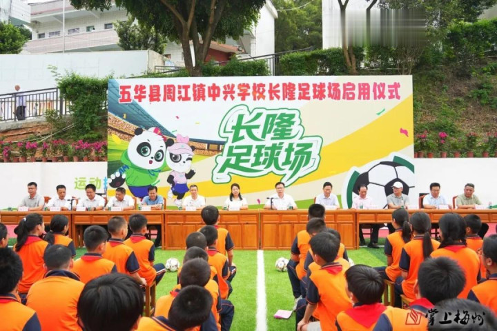 最令人动容的莫过于五华县周江镇第二小学的变迁。过去,这所服务周边10多个村社(区)的学校仅有一个简陋的水泥篮球场和一个尘土飞扬的泥土足球场。2025年10月,得益于长隆集团的慷慨捐资,学校新建了2000平方米的专业运动场地,包括符合国际足联认证标准的五人制足球场、配套篮球场、专业照明系统及绿化景观,周边道路与配套设施也同步升级。中兴长隆足球场项目有效弥补了当地专业体育设施的短板,改善了办学条件,有力促进了学生的全面发展。启用仪式上,学生代表稚嫩话语里满是对绿茵场的期待与对社会爱心的感激。